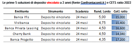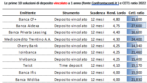 Ed è sulla base del CET1 che descrivo la qualità degli emittenti che offrono conti di deposito vincolato.