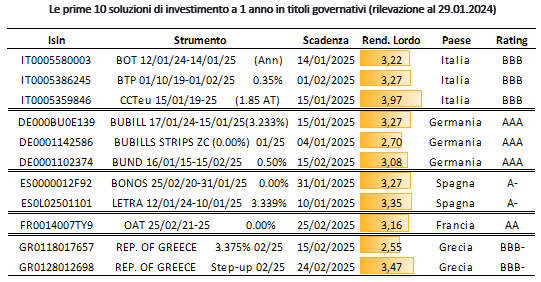 Nel seguito una tabella con le alternative investibili sotto forma di titoli sovrani dell’area Euro.