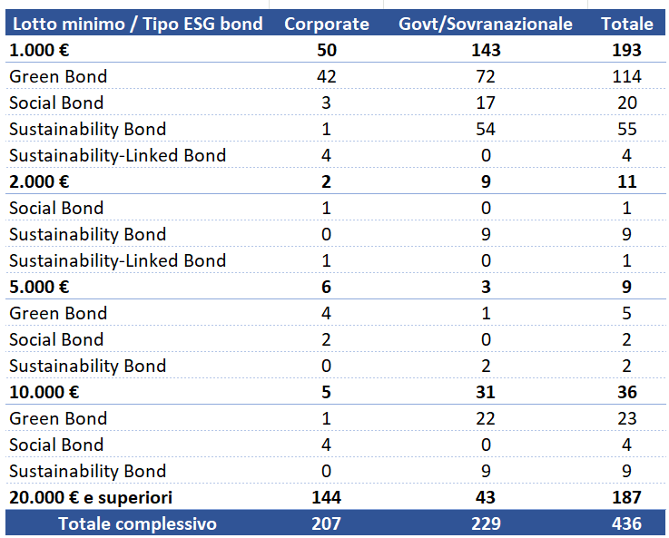 Un investitore classificato “al dettaglio” (caratteristica del risparmiatore retail) ha la possibilità di poter accedere facilmente al mercato italiano attraverso l’allocazione in obbligazioni con lotto minimo 1.000 Eur.