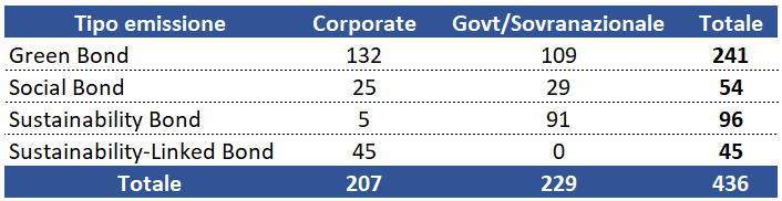 Sono sempre obbligazioni emesse da imprese, banche, Stati, altri enti pubblici e organismi sovranazionali: nel primo caso, l'emittente raccoglie risorse da destinare esclusivamente al finanziamento o al rifinanziamento sia di progetti sociali sia di progetti ambientali nuovi e/o preesistenti. Nel secondo caso, invece, l'obbligazione ha caratteristiche finanziarie e strutturali, di solito la cedola, che sono correlate a obiettivi di sostenibilità precedentemente definiti. Questi obiettivi sono quantificati attraverso l'uso di indicatori di prestazione (KPI) stabiliti in anticipo, tale per cui se l'emittente non raggiunge tali obiettivi, l'invesitore può percepire ad esempio tassi cedolari più elevati.